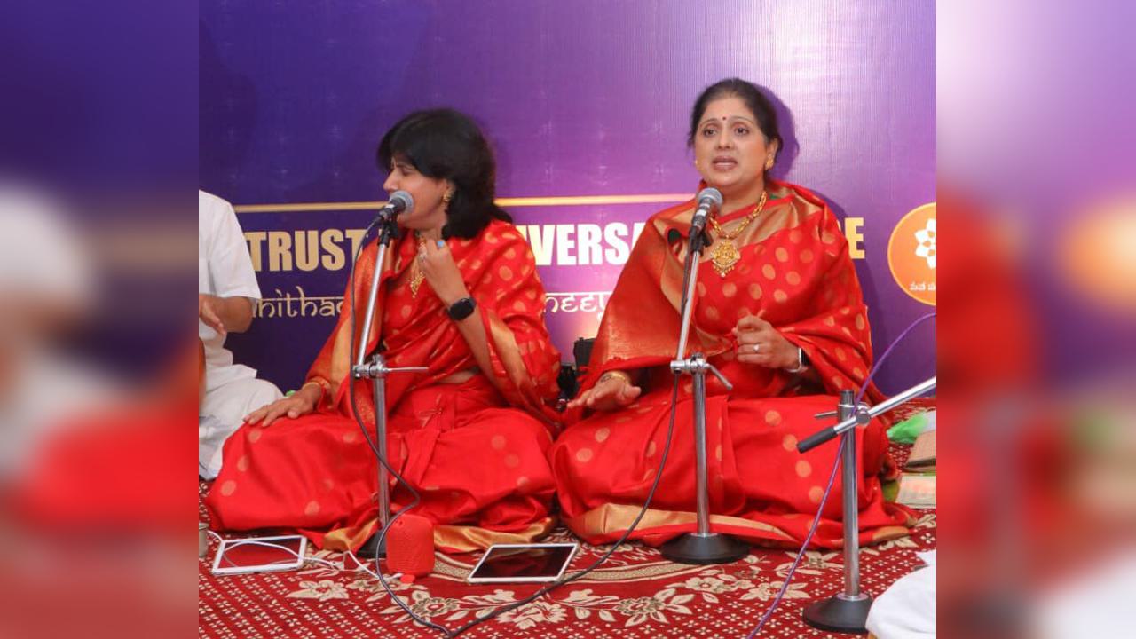 It was time for the melodious part of the evening. The devotees soaked in Divine ecstacy witnessing the heartful and lively performance of the famous Priya sisters - Shanmukhapriya and Haripriya. The Priya sisters enthralled not only the audience but seemed to also impress the Lord with their choice of the garland of divine renditions! The evening programme concluded with Mangala Arathi followed by Divya Prasadam.