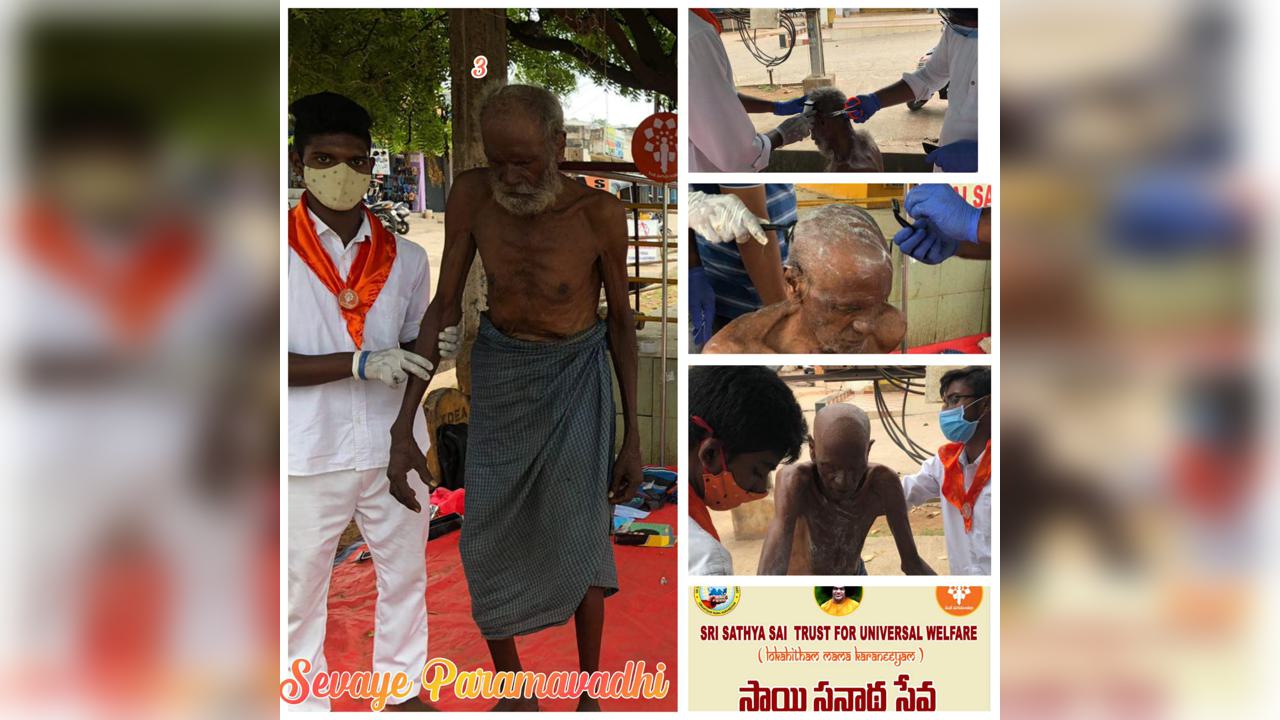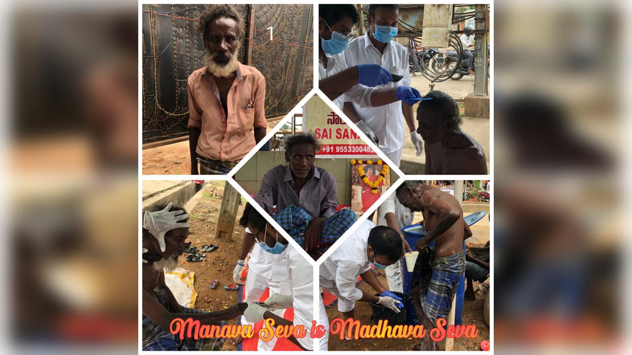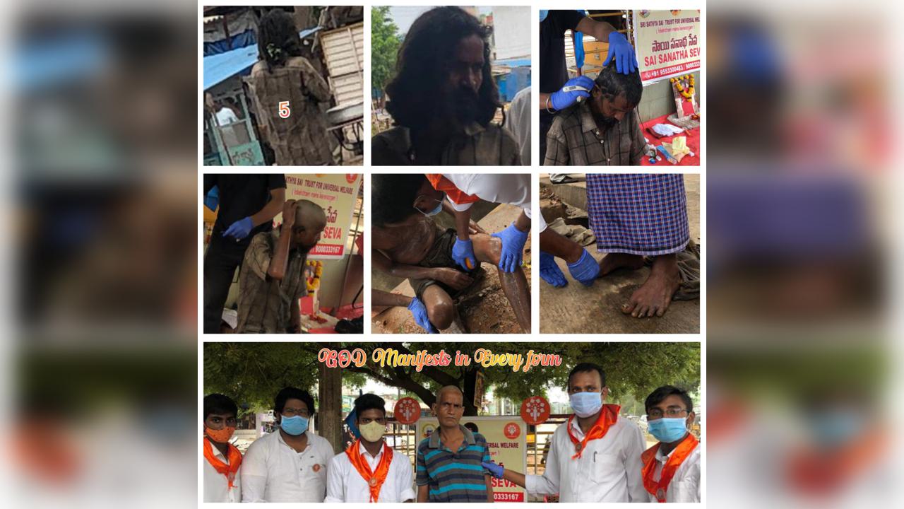 Sanatha means there is no anatha (orphan), for Swami is everyone's kith and kin. Today in Gajuwaka area in Visakhapatnam, under the Sai Sanatha Seva area, 9 madhukaris, who could not afford to take care of themselves, were given a facelift by grooming them neatly.