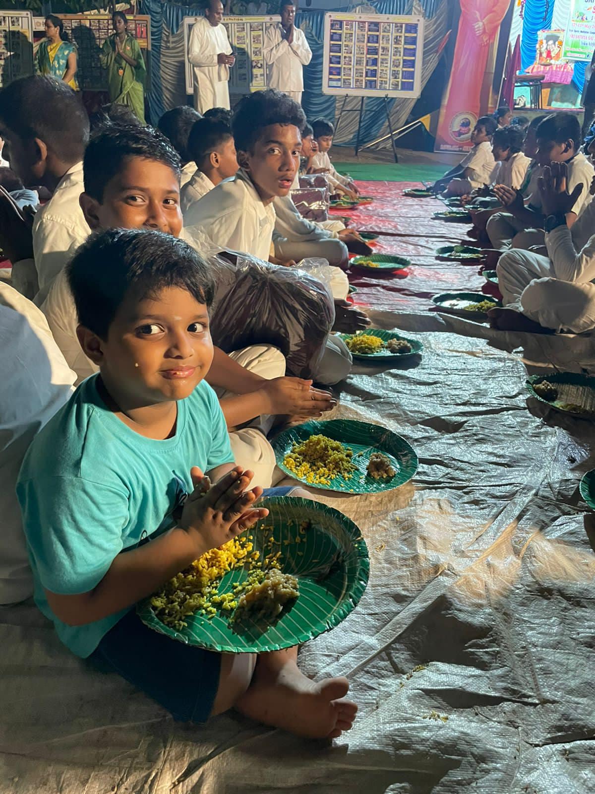 The children started the early morning sessions at 5:00 AM with Aumkaram and Suprabhatham followed by Nagarasankeertan. Further they underwent yoga sessions and inspiring sessions by various Gurus that had experts from Yoga Consciousness Trust, Om Santhi Organization and Art of Living. The early morning sessions concluded with breakfast for all.