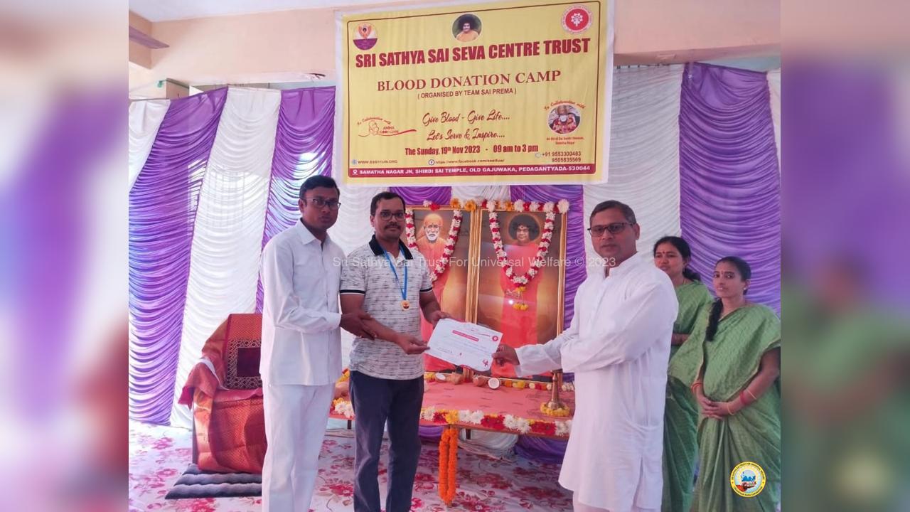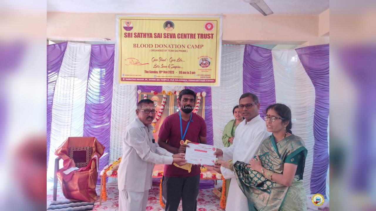 The second day of the glorious Birthday Celebrations of Bhagawan Baba, Who is the Embodiment of Selfless Love and Service, had the life saving blood donation drive at Shirdi Sai temple in Pedagantyada in Visakhapatnam.