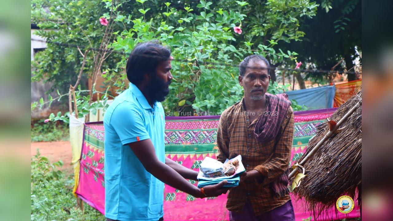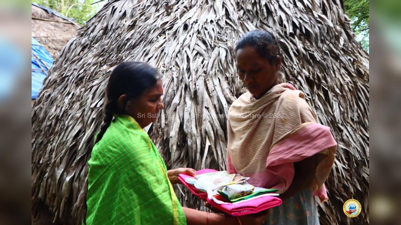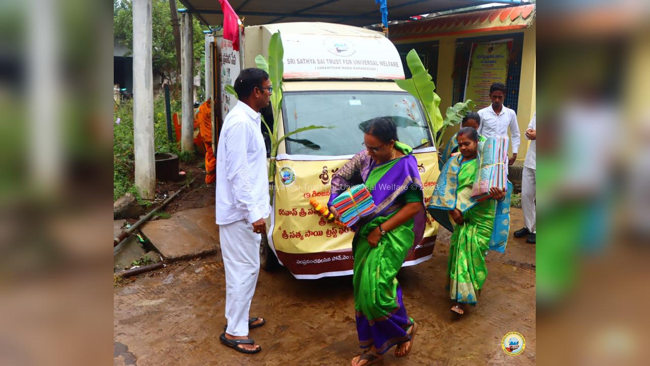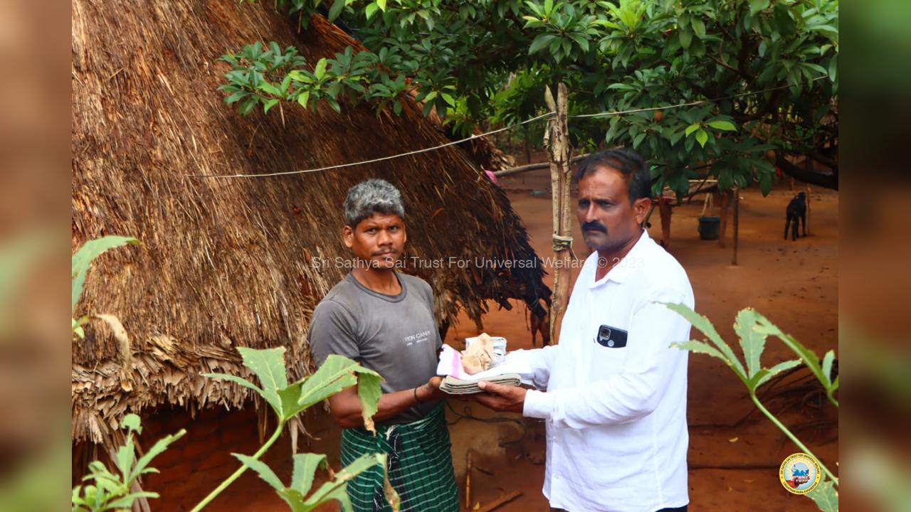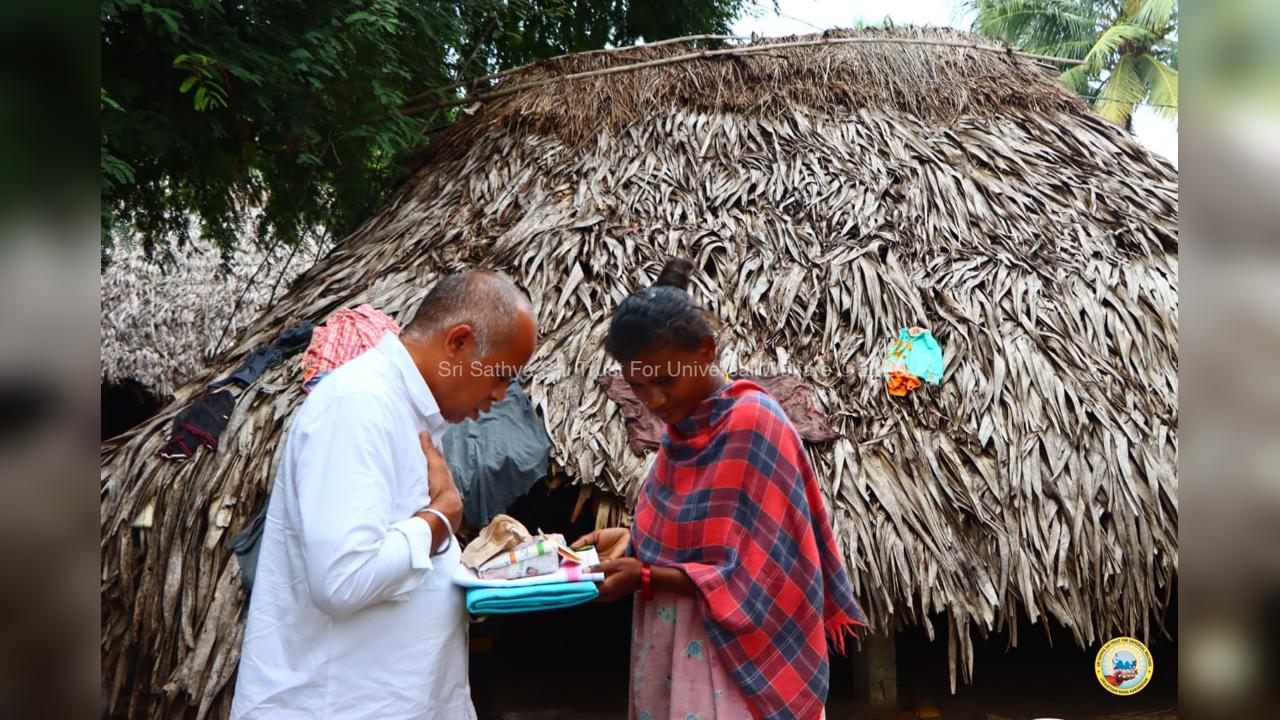 The army of loving devotees of Swami with their Lord went to the villages and performed Grama Seva where hundreds of needy families were provided with food, sarees, dhotis and divya prasadam including pulihora and laddoo. The recipients were thrilled to receive Swami's Prasadam on the occasion of Swami's Birthday!