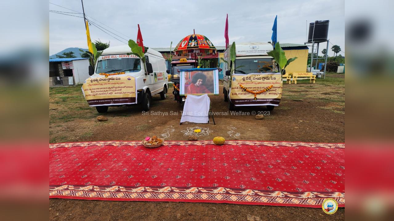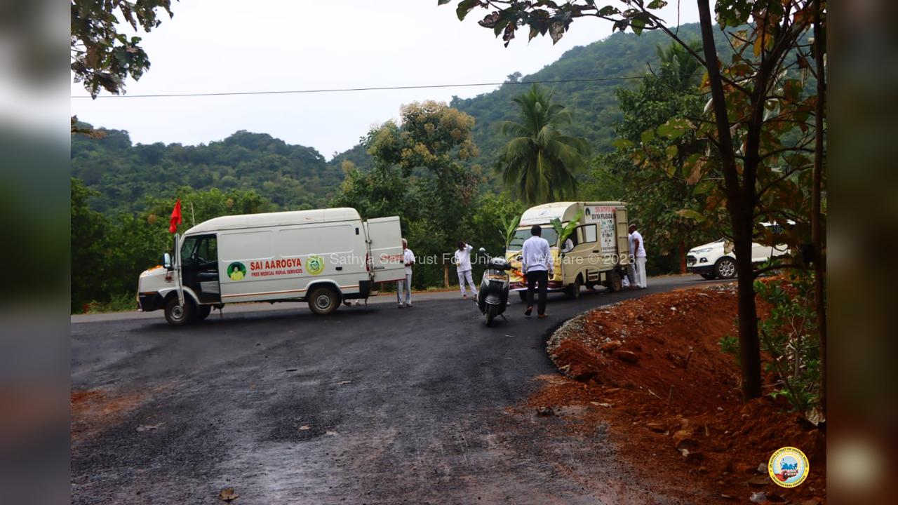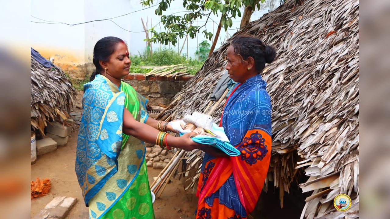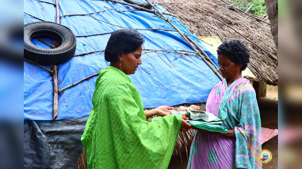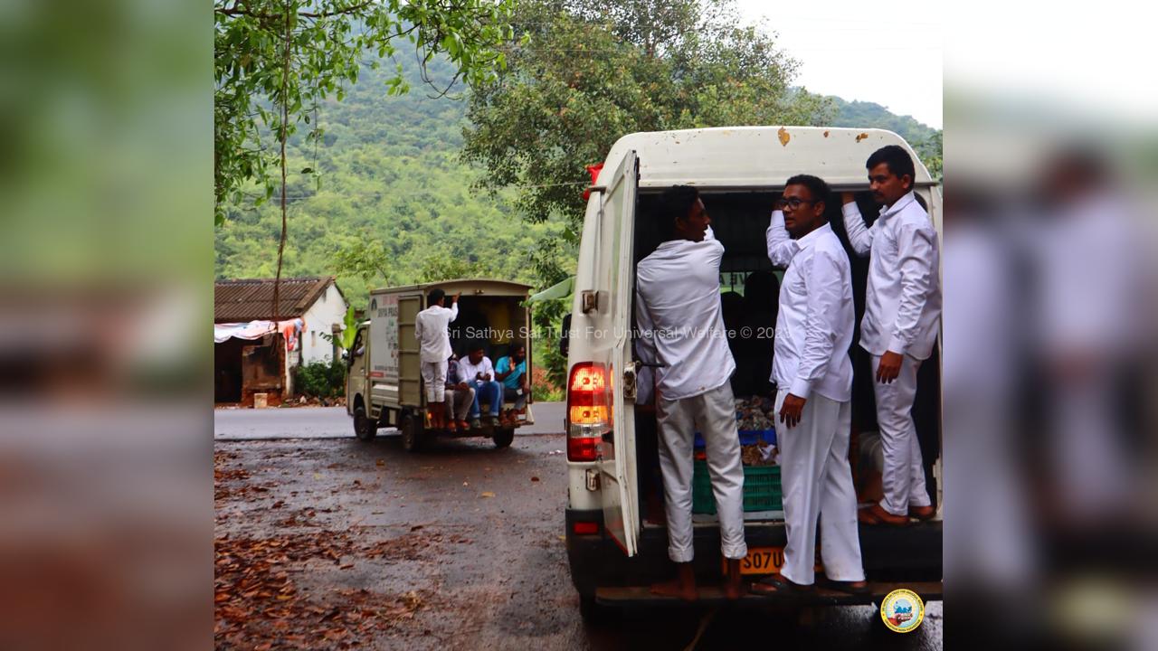 The army of loving devotees of Swami with their Lord went to the villages and performed Grama Seva where hundreds of needy families were provided with food, sarees, dhotis and divya prasadam including pulihora and laddoo. The recipients were thrilled to receive Swami's Prasadam on the occasion of Swami's Birthday!