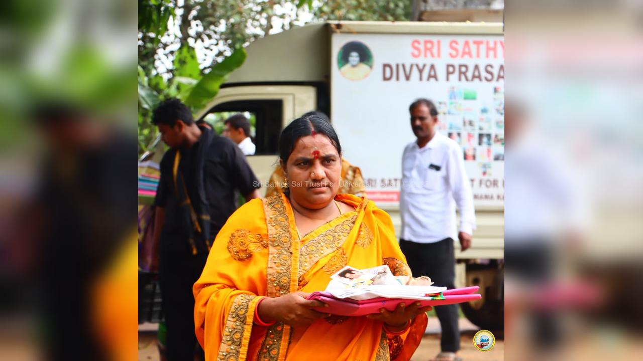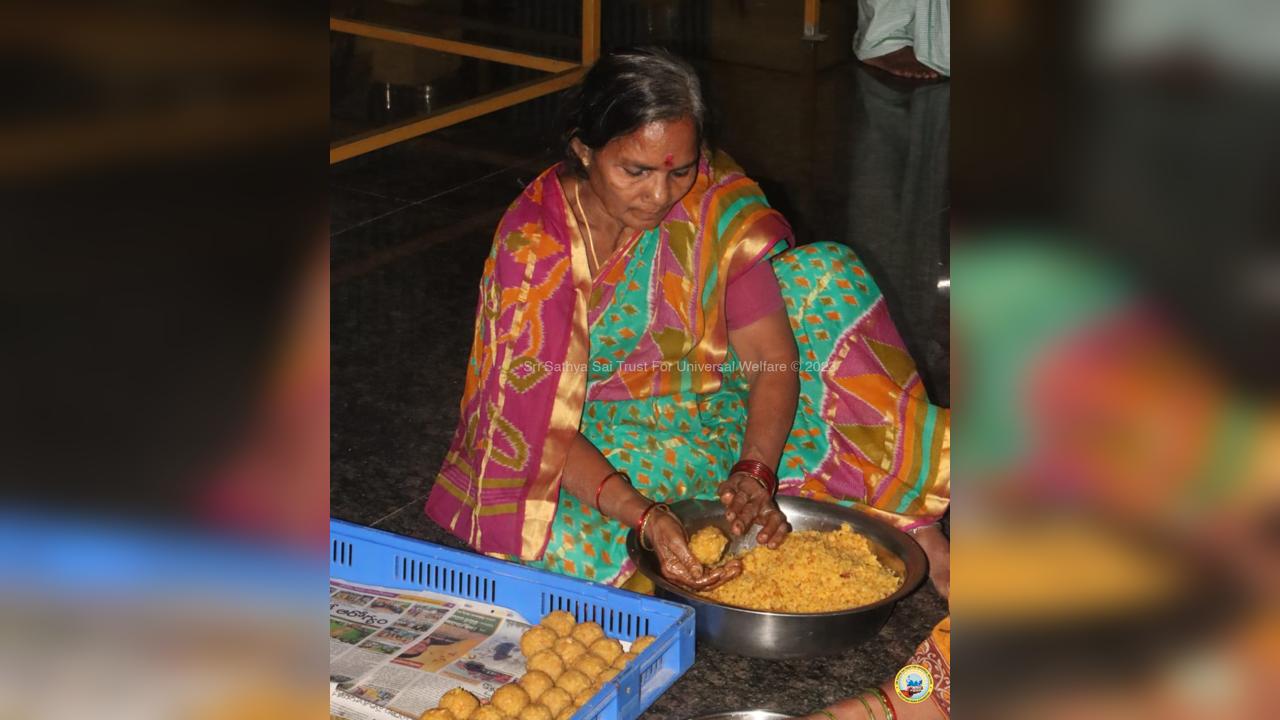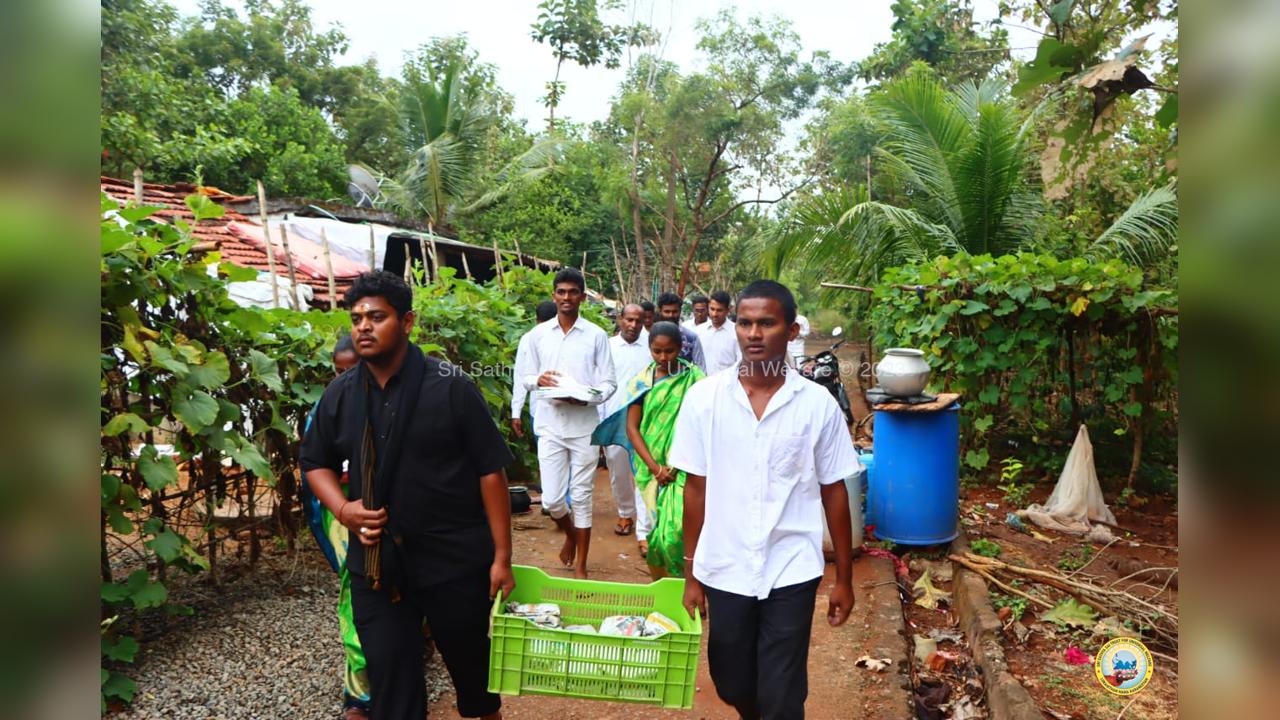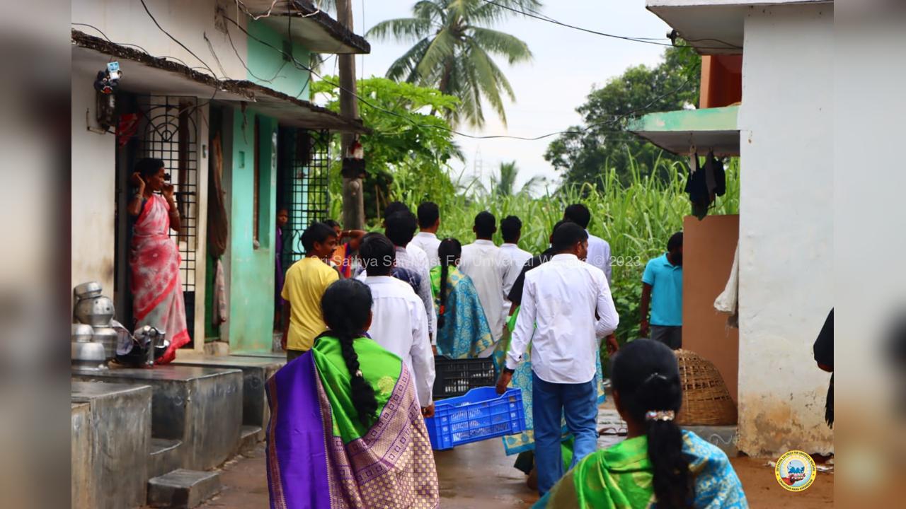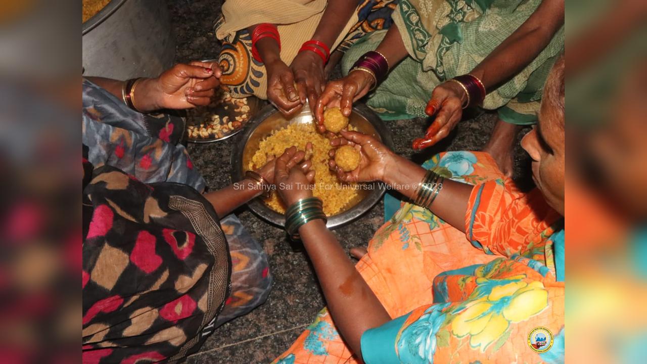 On the fourth day of the grand 98th Birthday celebrations of Bhagawan Sri Sathya Sai Baba, the Lord donned the role of a Divine Parent by serving the needy in 13 surrounding villages through the Grama Seva. The volunteers took to preparation and packing of Divya Prasadam like Pulihora and Laddoos throughout the previous night. Their undiluted love for Swami kept them not only awake all night but also inspired them to serve in the villages throughout the day from 8AM till night 7PM.