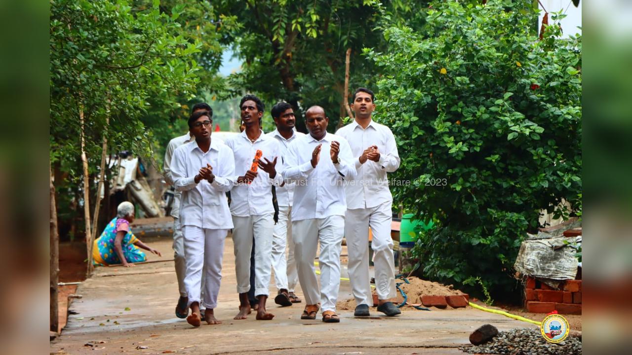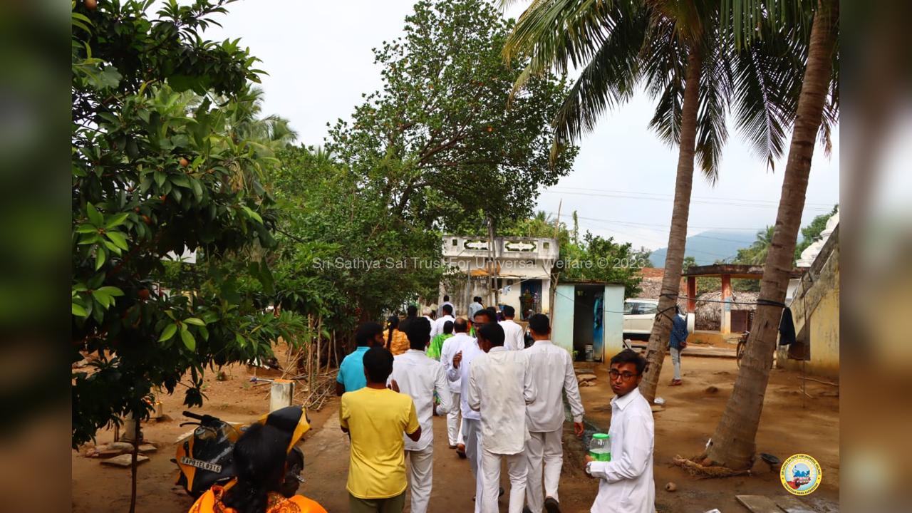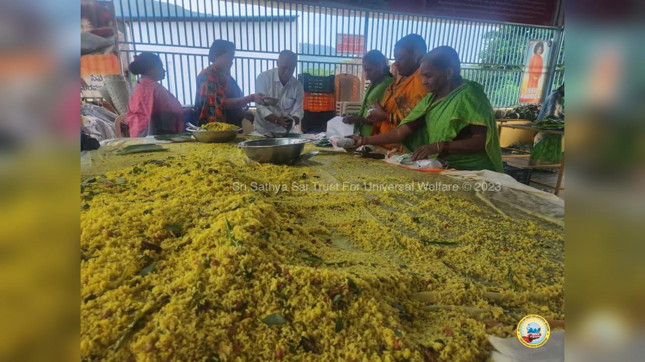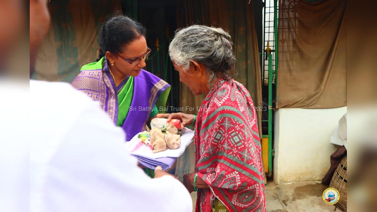 On the fourth day of the grand 98th Birthday celebrations of Bhagawan Sri Sathya Sai Baba, the Lord donned the role of a Divine Parent by serving the needy in 13 surrounding villages through the Grama Seva. The volunteers took to preparation and packing of Divya Prasadam like Pulihora and Laddoos throughout the previous night. Their undiluted love for Swami kept them not only awake all night but also inspired them to serve in the villages throughout the day from 8AM till night 7PM.