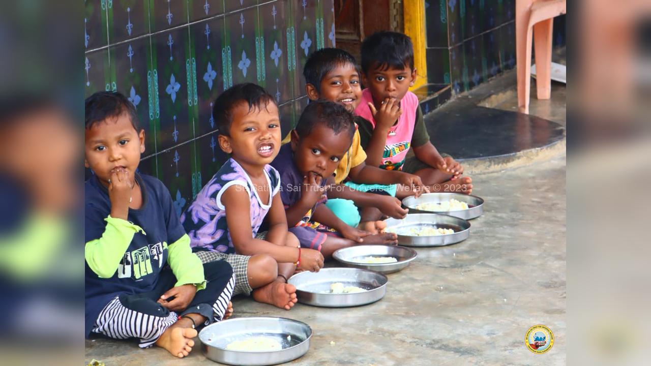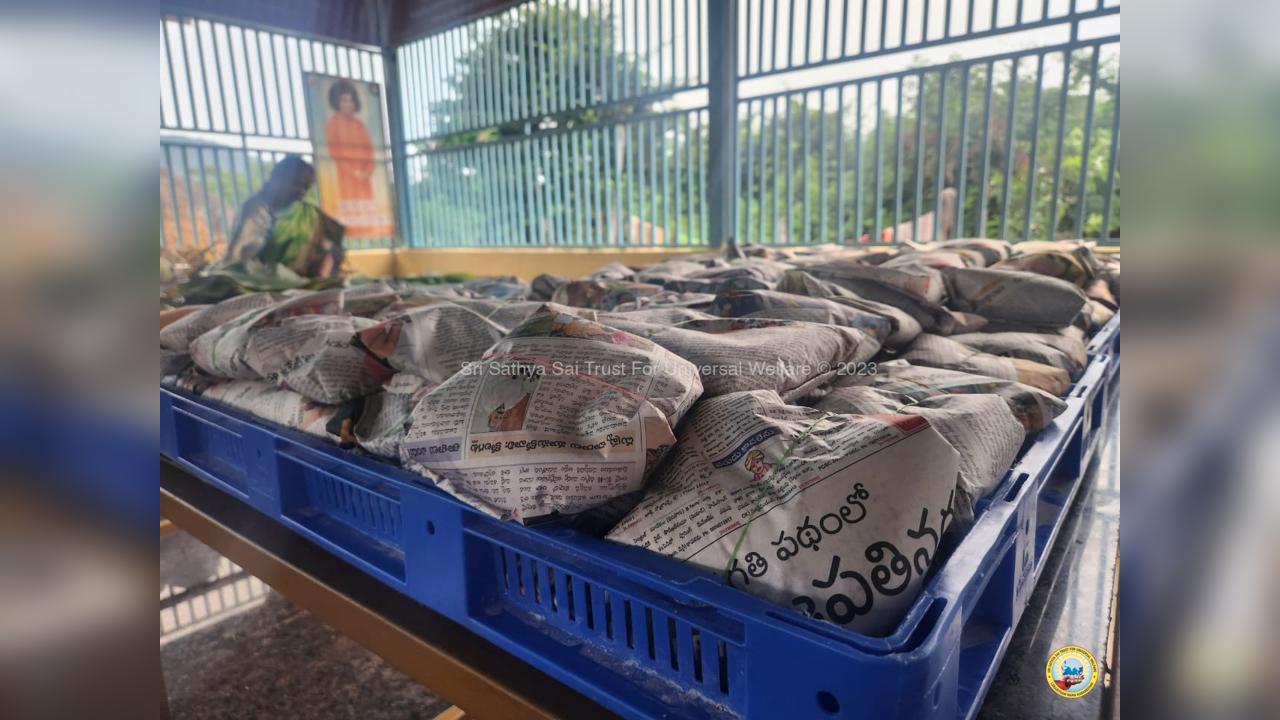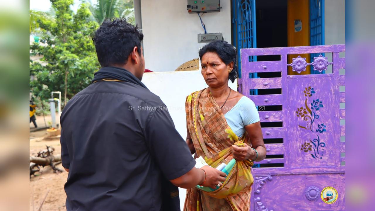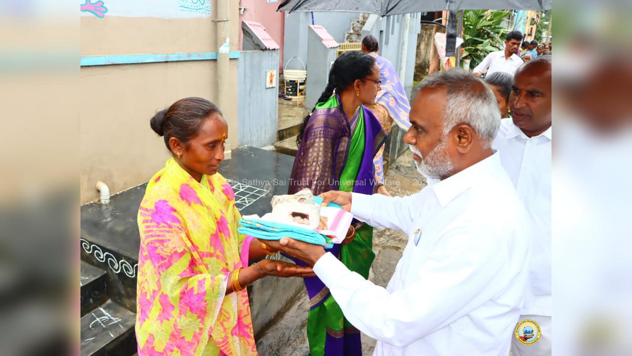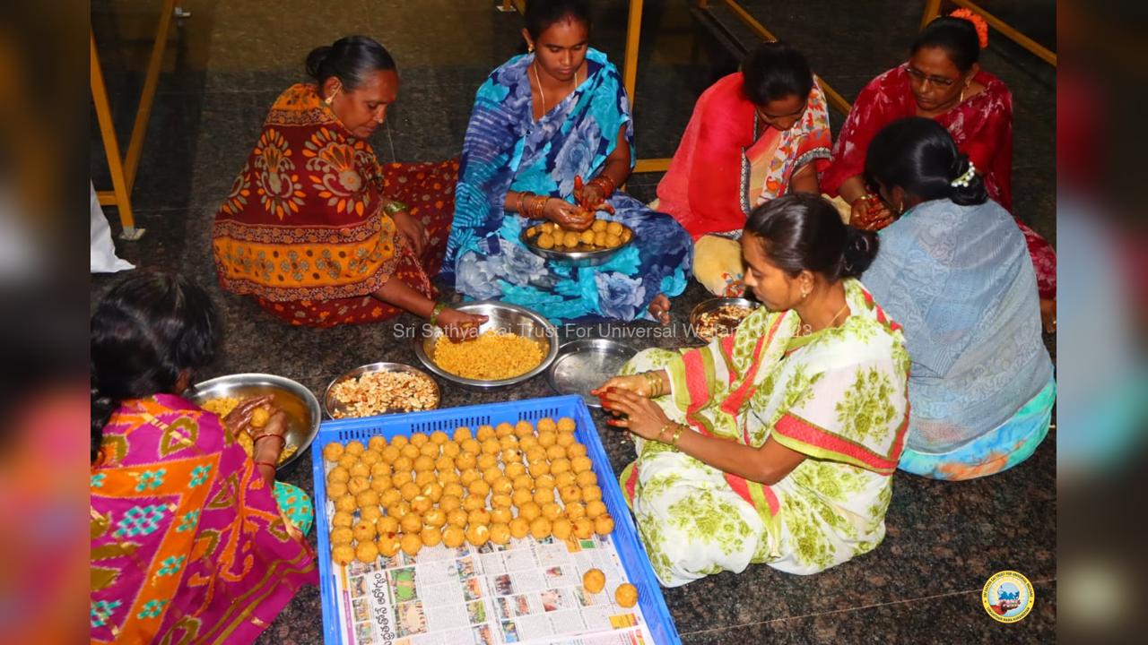 On the fourth day of the grand 98th Birthday celebrations of Bhagawan Sri Sathya Sai Baba, the Lord donned the role of a Divine Parent by serving the needy in 13 surrounding villages through the Grama Seva. The volunteers took to preparation and packing of Divya Prasadam like Pulihora and Laddoos throughout the previous night. Their undiluted love for Swami kept them not only awake all night but also inspired them to serve in the villages throughout the day from 8AM till night 7PM.
